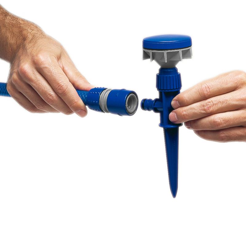 Mantén amplias zonas del jardín perfectamente regadas con menos tiempo y esfuerzo. Este aspersor de dispersión rotativa distribuye el agua de forma continua y homogénea, ideal para cubrir superficies grandes sin mover el equipo. Ofrece una amplia cobertura de hasta 135 m² con un caudal de 25 litros por minuto, funcionando de manera eficiente a 3 bares de presión. Su pincho asegura una fijación firme en el suelo y el conector universal permite una conexión rápida y sencilla para un riego práctico y fiable.