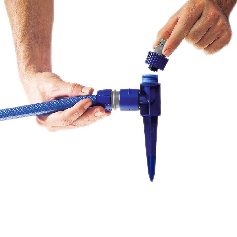 Mantén tu jardín siempre bien cuidado con el aspersor de dispersión sectorial que permite dirigir el riego a las zonas que lo necesitan, evitando desperdicios de agua y ahorrando tiempo en cada uso. Ofrece una cobertura de hasta 40 m² con un caudal constante de 20 litros por minuto, funcionando de manera eficiente a 3 bares de presión. Su conector universal facilita la conexión inmediata a la manguera, mientras que el pincho asegura una fijación estable para un riego cómodo, uniforme y sin complicaciones.