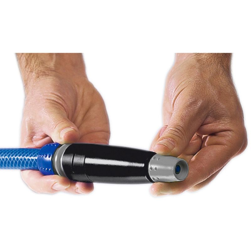 La Boquilla para manguera de gama Top Line está equipada con un conector universal que es compatible con todos los conectores rápidos. Esta boquilla ofrece 2 posiciones de chorro de agua y está hecha de plástico de alta calidad, resistente a los rayos del sol.